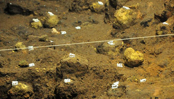 - Hundreds of yellow “spheres” with clay cores were coated in jarosite formed from oxidized pyrite, contributing to a glittering, star-like effect with mineral dusts along walls and ceiling. Archaeology Magazine