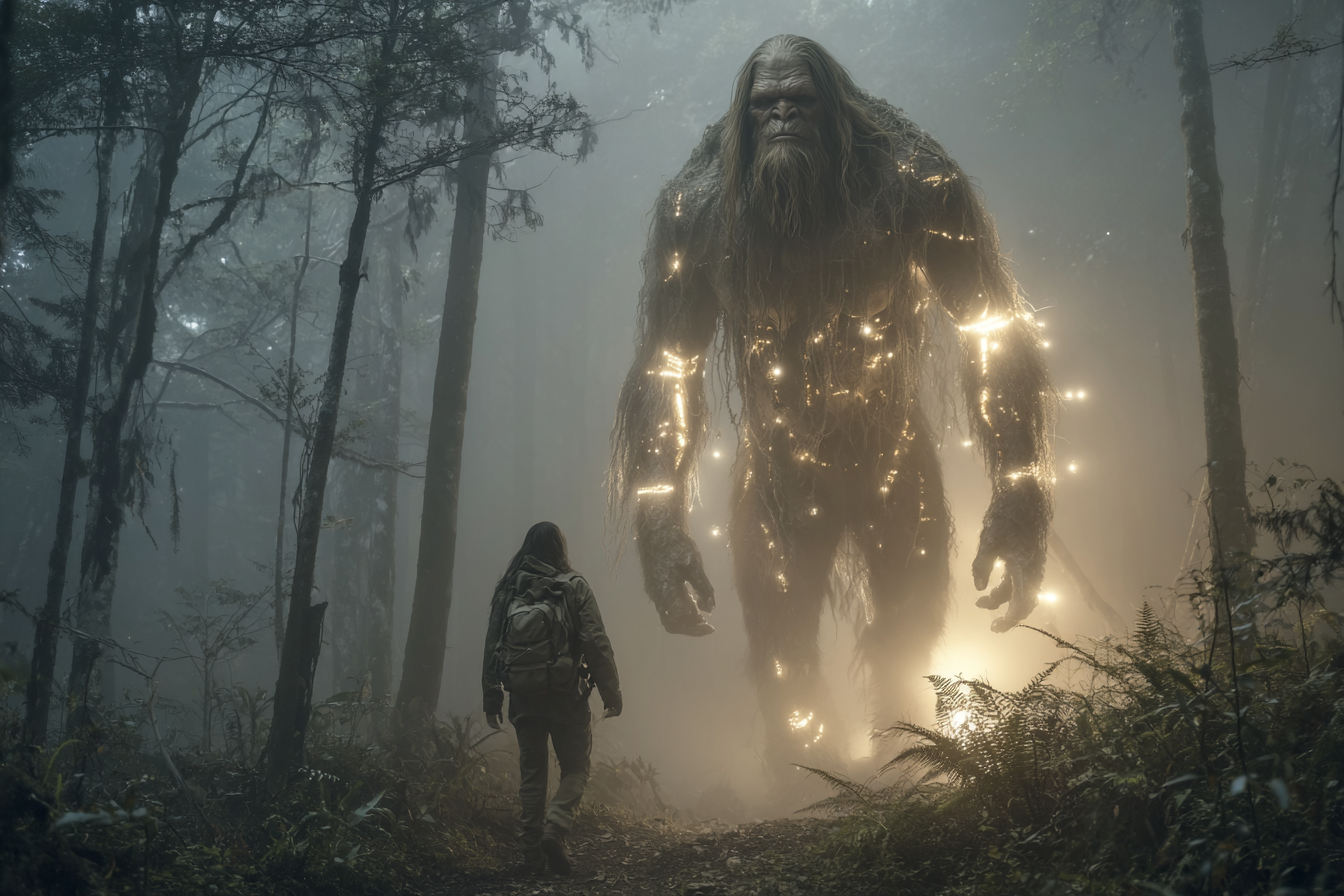 Imagine stumbling through a misty forest at dusk, the crunch of leaves underfoot suddenly silenced by an eerie stillness. Then, out of nowhere...a massive, shadowy figure materializes, its eyes glowing with an otherworldly intelligence. It's gone in a blink, leaving only a footprint that defies explanation.